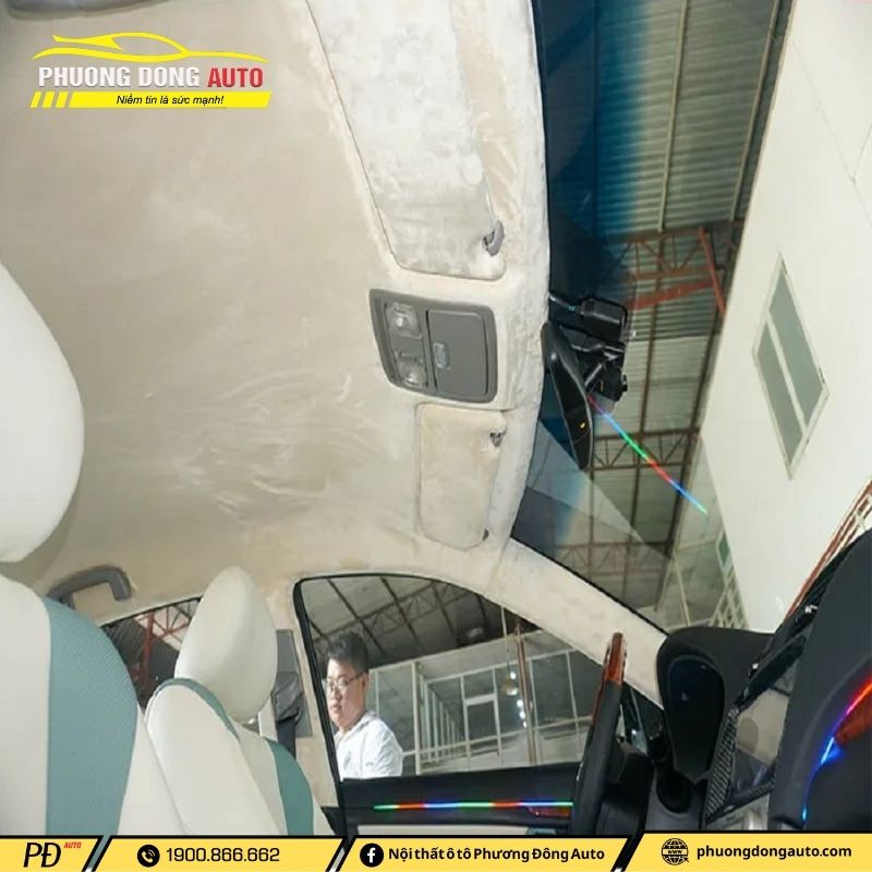 Ngoài ra, lớp keo liên kết giữa vải nỉ và bề mặt trần theo thời gian sẽ mất độ bám, dẫn đến hiện tượng trần bị xệ, bong hoặc phồng rộp. Điều này không chỉ làm mất thẩm mỹ mà còn tạo cảm giác khó chịu cho người ngồi trong xe, đặc biệt khi di chuyển trên các đoạn đường gồ ghề.