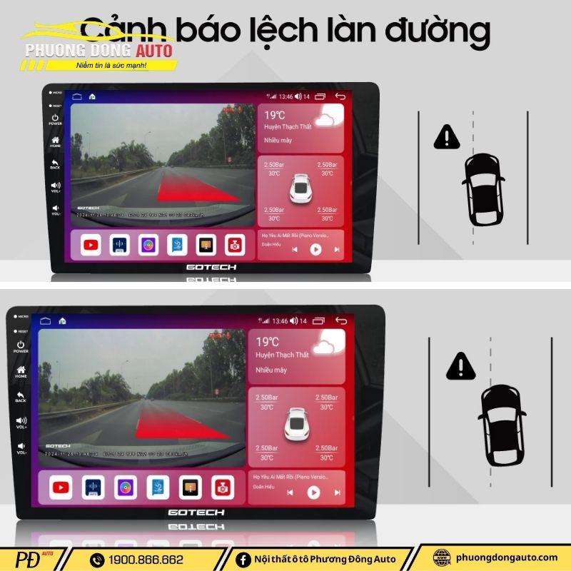 Tính năng cảnh báo lệch làn đường trên màn hình Gotech GTS4